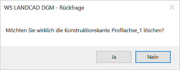 Wurden mit einem assoziierten Profilkörper automatisch weitere DGM-Flächen erstellt, erscheint zusätzlich eine weitere Rückfrage, ob diese ebenfalls gelöscht werden sollen. Ein Behalten der Flächen kann z. B. Sinn machen, wenn die Konstruktion nur einen Zwischenschritt darstellte und keine diesbezügliche Abhängigkeit mehr benötigt wird.