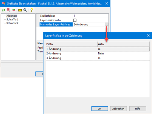 EditierenGrafik editierenGrafische Eigenschaften - AllgemeinLayer-Präfix Anzeige vorhandener Layer-Präfixe Um einsehen zu können, welche Layer-Präfixe in der Zeichnung bereits existieren, ist über die gepunktete Schaltfläche ein Wechsel in den Dialog Layer-Präfixe in der Zeichnung möglich.