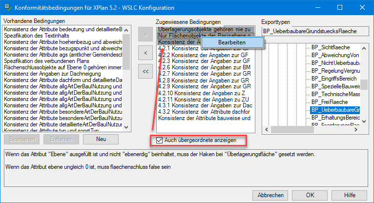 Schon existierende Konformitätsbedingungen können auf mehrere Arten bearbeitet werden. Zum einen über den Bearbeiten-Button im Zuweisungsfenster, alternativ aber auch mit einem Rechtsklick auf eine bereits zugewiesene Bedingung. Diese Art der Bearbeitung funktioniert auch für die vererbten Konformitätsbedingungen übergeordneter Klassen.