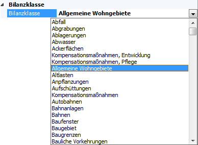 Das Zuordnen einer Bilanzklasse zu einem Planzeichen ist erforderlich, damit es bei einer Bilanz erfasst und das Vorkommen in der Zeichnung quantitativ ausgewertet werden kann. Die Auswahl erfolgt über die Klappliste, welche alle Bilanzklassen der Systemdatenbank enthält. Die Beschreibung der zugeordneten Bilanzklasse ist im Feld Klassenbeschreibung ersichtlich. |