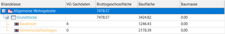 Die Bruttogeschossfläche des 1246,43 m² großen Baukörpers beträgt aufgrund der 6 Vollgeschosse 7478,57 m². Die Baufläche der Gemeinschaftsanlage wird nicht einbezogen, denn sie weist im Sachdatenfeld VG-Sachdaten keinerlei Informationen auf.