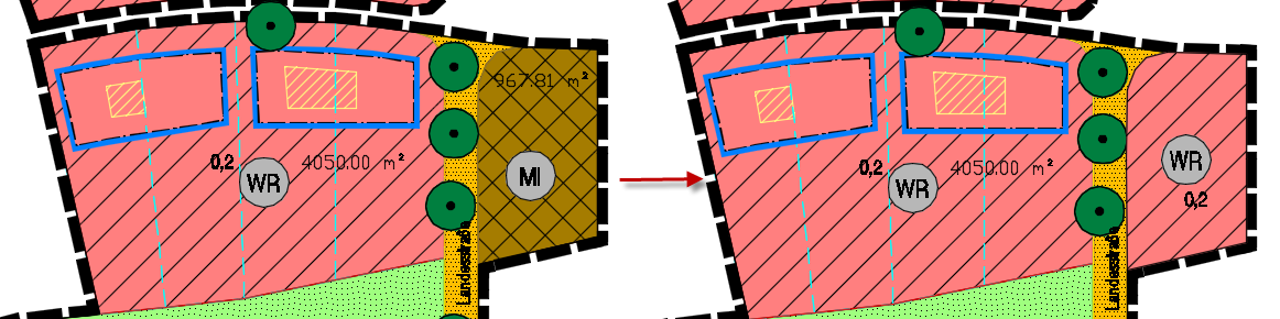 - räumlich getrennte Planzeichenflächen können vereinheitlicht werden,