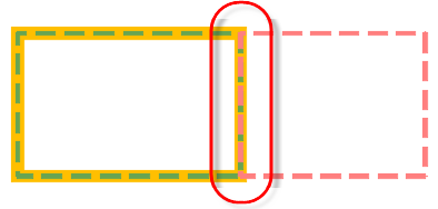 Wenn zwei Kurvensegmente übereinander liegen, so müssen sie im Sinne der Flächenschlussregel eine identische Bogenkrümmung aufweisen. In dem Beispiel haben die Kurvensegmente zwar identische Start- und Endpunkte, doch wegen differierender Radien ist der Bogenmittelpunkt ein anderer. Das ist ein geometrischer Fehler. |