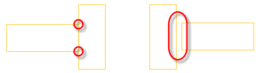 Die aneinander grenzenden Kanten von zwei PZ-Flächen sollten gemeinsame Stützpunkte aufweisen. Ist das nicht der Fall, so haben einzelne Kanten keine benachbarte Kante oder keine Kantengleichheit. Beispiel:
