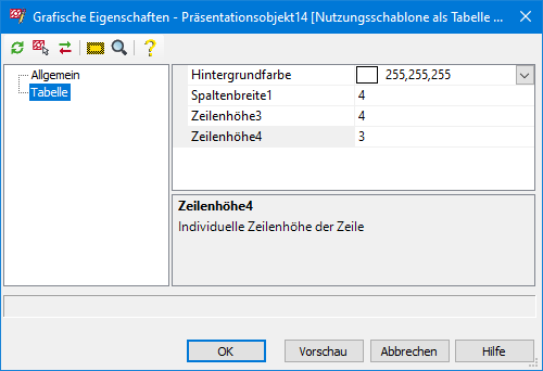 Grafische Eigenschaften - Tabelle
