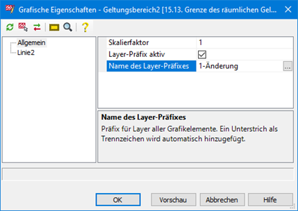 Zur Vergabe eines Layer-Präfixes wählt man im Grafik editieren-Dialog den Gliederungspunkt Allgemein: