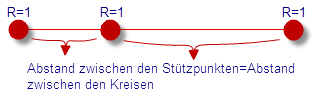 Der Radius des Kreises ist über den Parameter definiert. Die Kreise werden an den Stützpunkten der Linie konstruiert. |