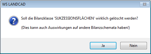 Achtung: Die Bilanzklasse wird hiermit restlos aus der Systemdatenbank gelöscht. Bitte führen Sie die Aktion also nur dann aus, wenn Sie sich absolut sicher sind, dass die Bilanzklasse weder bestehenden Planzeichen noch Bilanzschemata zugeordnet ist, da ansonsten Inkonsistenzen entstehen können. |