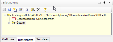Achtung: Achten Sie bei der Anlage eines Bilanzschemas unbedingt darauf, dass an einem Gliederungspunkt immer das Gesamtergebnis der jeweils darunter befindlichen Punkte darstellt wird, da aufgrund des Berechnungsschemas hierarchisch aufaddiert wird. Für einen Gliederungspunkt erster Ordnung bietet sich daher eine Bezeichnung in der Art Gesamt oder Summe an. Soll bei Flächenbilanzen der Geltungsbereich dargestellt werden, ist es zweckmäßig, zunächst eine entsprechende Kategorie einzurichten. Das restliche Schema sollte dann gleichrangig darunter angeordnet werden. Dies ist auch beim Bilanzschema Planzv90Bil.sqlite so geregelt. |
