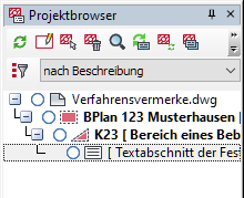 Planzeichen ohne Grafik werden im Projektbrowser stets mit dem gleichen Texticon angezeigt. Es handelt sich um separate Objekte, die keinem anderen Planzeichen zugeordnet sind und daher auch nicht verschachtelt angezeigt werden. |