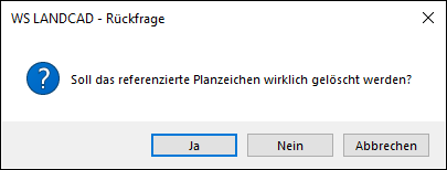 In den Zeilen zu den vorhandenen Referenzobjekten kann am rechten Rand das Icon Zur Sicherheit erfolgt eine Nachfrage: |