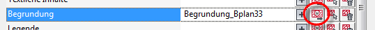 Über die Enter-Taste oder einen Klick auf das rot umrahmte Icon öffnet sich der Referenz-editieren-Dialog in einer zweiten Instanz, allerdings mit einer anderen Auswahl an Sachdatenfeldern. Diese Auswahl ist bestimmt durch das Planzeichen 'Externes Dokument'.