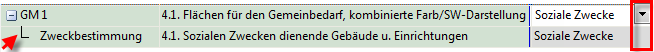 Hinweis: Wenn an einem Planzeichen gebundene Präsentationsobjekte hängen, können deren Werte über den Multieditieren-Dialog nicht editiert werden. Gleichwohl sind sie in der tabellarischen Ansicht in einer Zeile unter dem "Mutterobjekt" aufgeführt. Zu erkennen ist das an dem Pluszeichen vor dem übergeordneten Planzeichen.