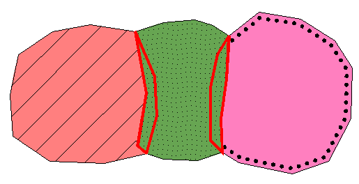 Ermöglicht die Hervorhebung der sich überlappenden Bereiche. Der überlappende Bereich wird rot umrandet. Soll die Markierung dauerhaft bestehen, kann über das eingeblendete Kontextmenü die Option Permanentumrahmung aktiviert werden. Die Markierung bleibt dann auch nach dem Verlassen der Überlappungsanalyse bestehen. Diese Anzeigemöglichkeit gehört zu den zentralen Hervorhebungsfunktionen von WS LANDCAD und steht an vielen Stellen zur Verfügung. |