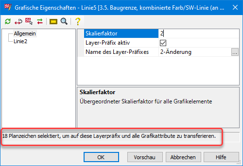 Es spielt im Übrigen keine Rolle, ob man die gewünschten grafischen Attribute und den Namen des Layer-Präfixes vor der Wahl der Ziel-Planzeichen oder danach bestimmt.