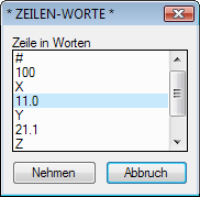 Somit haben Sie also volle Kontrolle darüber, welcher Anteil eines Wortes in der Koordinatenzeile durch Messfile als Datenwert dem aktuellen Format-Key und damit dem entsprechenden Datenwert des Messpunktes zugewiesen wird. Der Modus Wortmodus wird auch dann automatisch aktiviert, wenn Sie den benötigten Anteil der Koordinatenzeile mittels der Wortliste auswählen. Dabei wird gleichzeitig die entsprechende Wortnummer gesetzt; jedoch wird auch stets die Zählung von links eingestellt, was Sie ggf. manuell ändern können. Diese spezielle Form der Spaltenfestlegung kann z.B. dann von Interesse sein, wenn die klassische Form der Zählung von links nicht zum Erfolg führt.