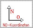 NO-Koordinaten - Wenn Sie diese Methode zum Linien zeichnen wählen, können Sie die Koordinaten der Linienpunkte nacheinander als Hochwert und Rechtswert einzeln eingeben. Den numerischen Wert der Koordinaten können Sie auch durch Zeigen einer Strecke am Bildschirm bestimmen. Die Z-Koordinate wird erfragt, wenn der 3D-Schalter gesetzt ist. |