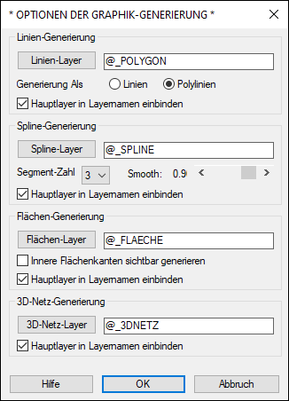 Messfile ist in der Lage, neben der Generierung der eigentlichen Messpunkte und ggf. zugehöriger Signatur-Symbole, auch Linien-Grafik zu erzeugen. Messfile kennt folgende Arten der Grafikgenerierung: