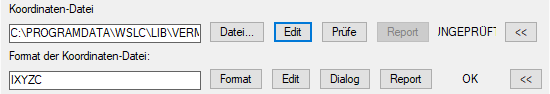 In der Formatzeile sind nun alle Schaltflächen freigegeben. In der Koordinatenzeile wurde die Schaltfläche Pruefe freigegeben, da nun eine Verbindung zu einem Koordinatenformat gegeben ist.