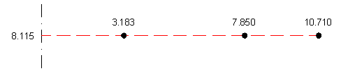 Der Maßtext befindet sich mittig über der Ordinate. Liegen mehrere Punkte auf der gleichen Ordinate, wird der Text senkrecht ausgerichtet (um 90° gedreht). Dies ist die ursprüngliche Darstellung und entspricht der DIN 18702. |