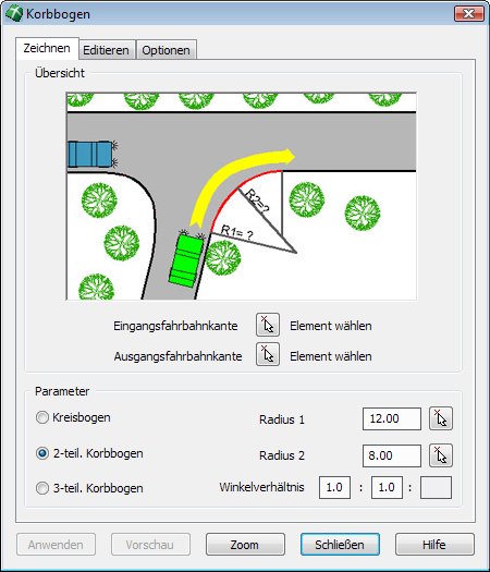 Um im Anschluss ggf. Parameter noch verändern zu können, kann eine Vorschau des Korbbogens generiert werden.