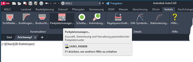 Zur Befehlsauswahl stehen je nach verwendetem CAD-System und verwendeter Konfiguration ein Register in der Multifunktionsleiste, ein Pull-down-Menü und ein Werkzeugkasten zur Verfügung, welche jeweils die gleiche Befehlsstruktur aufweisen.