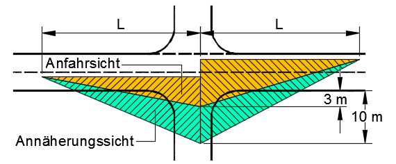 Die Sichtfelder werden auf Grundlage von Tabellendaten gem. RASt06 bzw EAE/EAHV gezeichnet.