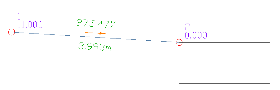 Das Rechteck befand sich auf der Höhe 0. Dadurch wurde auch die Höhe auf den Punkt 2 übertragen. Der Abstand und die Neigung wurden entsprechend aktualisiert.