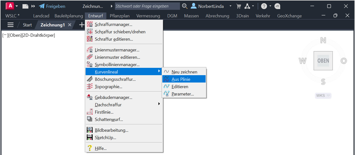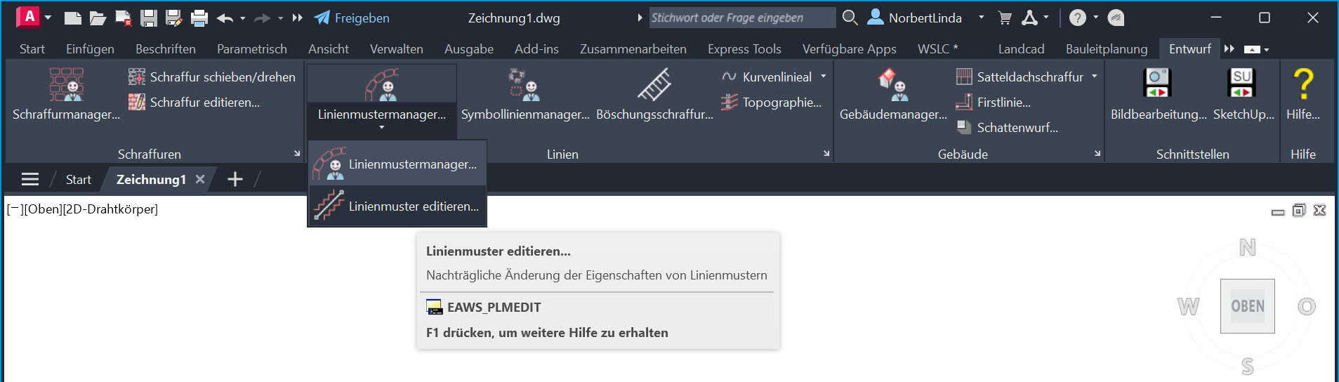 Zur Befehlsauswahl stehen je nach verwendetem CAD-System und verwendeter Konfiguration ein Register in der Multifunktionsleiste, ein Pull-down-Menü und mehrere Werkzeugkästen zur Verfügung, welche jeweils die gleiche Befehlsstruktur aufweisen.