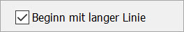 Dieser Schalter bestimmt, ob eine Böschungsschraffur mit einer langen oder einer kurzen Böschungsschraffe (Schraffurlinie) beginnt. Der Beginn einer Böschungsschraffur wird stets durch den Richtungssinn der Böschungskanten definiert, was auch ein Grund dafür ist, dass hier in der Vorschau deren Richtung angezeigt wird.