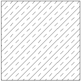 Die Vorgehensweise für eine neu zu erstellende CAD-Schraffur soll anhand eines praktischen Beispiels erörtert werden. Sie möchten für die künftigen Ausführungsplanungen das Muster für bewehrten Beton erstellen. Das Muster besteht aus parallelen Linien gleichen Abstandes, die i. d. R. im Winkel von 45° gezeichnet werden. Jede zweite Linie ist gestrichelt. Damit entspricht dieses Muster in etwa der AutoCAD-Schraffur ANSI33. Die Aufgabe besteht nun darin, ein Linienmuster zu zeichnen, welches den kleinsten gemeinsamen Teil dieser Schraffur definiert. |