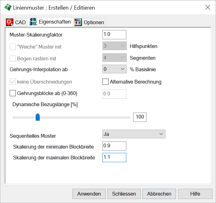 In der Registerkarte Eigenschaften können grundsätzliche Parameter zur grafischen Mustergenerierung eingestellt werden.