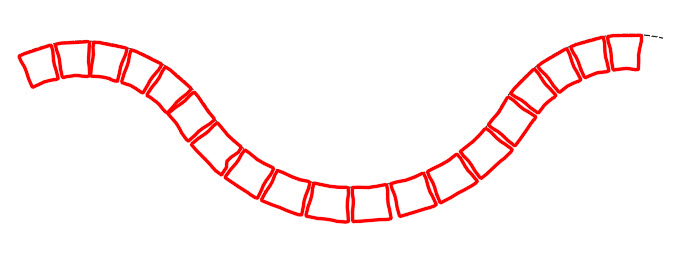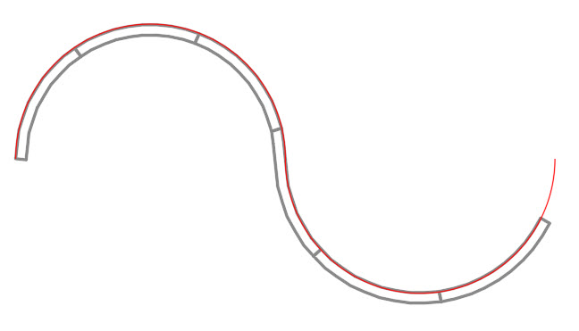 Bei der weichen Generierung werden die genannten Elemente als elastische Linienstücke behandelt und dadurch dynamisch angepasst. Dies wird durch das Einsetzen von Hilfspunkten erreicht, deren Anzahl Sie aus der Popup-Liste wählen können, sobald sie die weiche Generierung ausgewählt haben. Stellen Sie sich die Anwendung eines Kantensteinmusters entlang einer gekrümmten Wegekante vor.