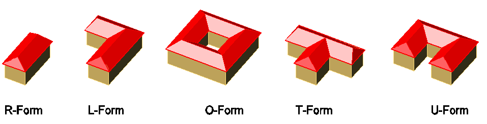 Die 5 Grundformen entsprechen den in der Stadtplanung verwendeten Grundtypen. Davon abweichende Grundrisse können durch Verschmelzung dieser Grundformen erreicht werden. Hierbei erweist sich die Verwendung von ACIS-Volumenkörpern als entscheidender Vorteil gegenüber 3D-Flächen.
