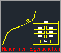 Wurde eine Höhenlinie (oder allgemein eine Polylinie) gewählt, so wird anschließend der CAD-Befehl Eigenschaften automatisiert gestartet, mit dem alle Objekteigenschaften eingesehen und direkt verändert werden können. Die Höhe können Sie dabei unter dem Parameter Geometrie → Erhebung ablesen und neu festlegen. |