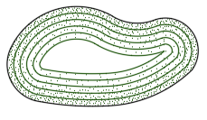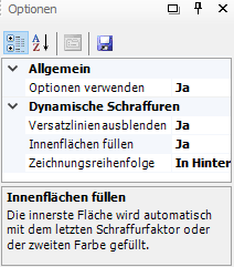 - Innenflächen füllen – Diese Option hat nur bei geschlossenen Umgrenzungen eine Auswirkung. Die innerste Fläche wird hierbei automatisch mit dem letzten Schraffurfaktor schraffiert bzw. mit der zweiten festgelegten Farbe gefüllt. Dies ist v. a. bei dynamischen Farbverläufen eine oft gewünschte Eigenschaft.