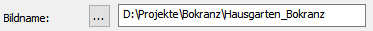 Der Bildname wird automatisch durch den Zeichnungsnamen in das dazugehörige Feld eingetragen. Sie können diesen jedoch bei Bedarf durch Aktivierung der gepunkteten Schaltfläche [...] ändern. Hierbei erscheint der Standard-Dateidialog, in welchem Sie den Namen bitte ohne Dateiendung angeben.
