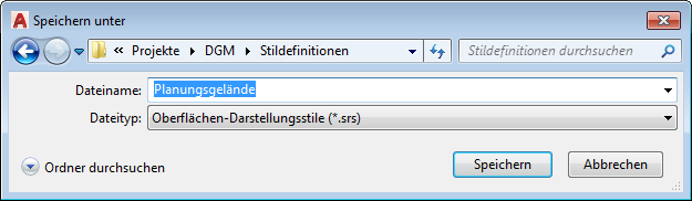 Der aktuell eingestellte Stil kann jederzeit in eine externe Stildefinitionsdatei im jeweils entsprechenden Format exportiert werden. Hierbei handelt es sich um eine ASCII-Datei, welche alle Zuweisungen, geordnet nach Sektionen und Zuweisungsschlüsseln, enthält.