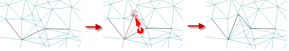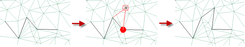 Verschiebt den aktiven Stützpunkt auf einen beliebigen anderen vorhandenen DGM-Punkt. Die Verschiebung wird durch einen roten Pfeil angezeigt. Ein oder zwei rote Sehnen sind mit der Pfeilspitze verbunden und demonstrieren dadurch den Verlauf der künftigen Grenzlinie.