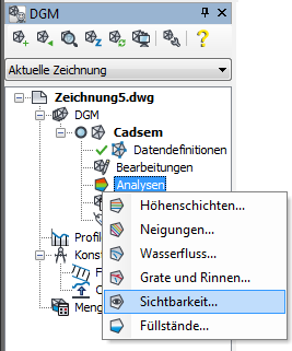 Die Ergebnisse der Analyse Sichtbarkeit werden auf separaten Zeichnungslayern erstellt.