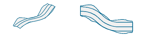 Die Böschungsschraffur wird sowohl in 2D als auch in 3D ohne separate Böschungskanten erzeugt. |