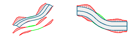Die Böschungsschraffur wird sowohl in 2D als auch in 3D erzeugt. Zusätzlich werden für beide Schraffurtypen separate Böschungskanten als Polylinien erzeugt. |