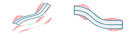 Die Böschungsschraffur wird nur in 3D erzeugt. Zusätzlich zu den Schraffurlinien werden die Böschungskanten als Polylinien erzeugt. |