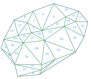 Jedes Dreieck erhält bei der Erzeugung des TIN eine eindeutige Dreiecksnummer. Diese Nummer kann zur Ausgabe von Flächenplänen, z. B. bei einer Berechnung über die Prismenmethode, gezeichnet werden. Mit dem Menüpunkt Dreiecke wird das gesamte aktuelle TIN oder ein ausgewählter Teilbereich von Dreiecken beschriftet. Die Texte erscheinen jeweils im Schwerpunkt eines Dreiecks. Die Dreiecksnummern werden automatisch auf einem DGM-Layer abgelegt, welcher sich aus der Oberflächenbezeichnung sowie dem gewählten Suffix aus dem Beschriftungsstil zusammensetzt (z.B. $lbt$Oberfläche_1$_DGM_Beschriftung_Dreiecke). |