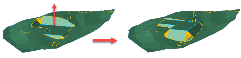 Eine Konstruktionskante kann auch mit CAD-Bordmitteln editiert werden. So gehören z. B. das Verschieben in der Lage oder Höhe sowie das Strecken von Stützpunkten zu den gängigen Operationen, die im Nachhinein u. U. angewendet werden. Das Resultat einer assoziativen Böschungskonstruktion wird daraufhin automatisch aktualisiert.