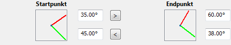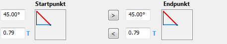 - Um die Eingabe gleicher Werte für den Start- und den Endpunkt zu erleichtern, kann die Gesamtheit der Werte einer Seite auf die andere Seite mit Hilfe der Pfeilschalter (< >) kopiert werden.