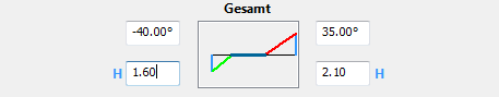 - Böschungshöhen (H) und Böschungstiefen (T) werden hellblau dargestellt. Gleichzeitig wird das Kürzel des Parameters eingeblendet.