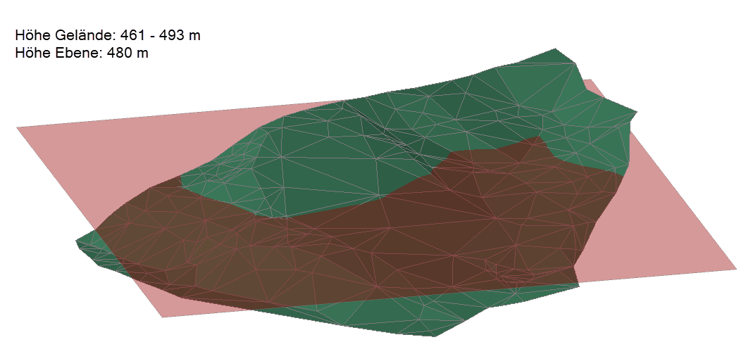 Die Bezugsfläche wird mit einer Ebene frei wählbarer Höhe verschnitten. Diese Ebene ist ein künstliches Konstrukt und besitzt die gleichen XY-Maximalwerte wie die erste Fläche. |