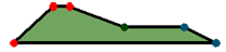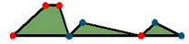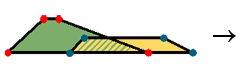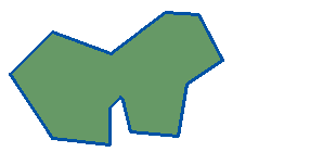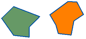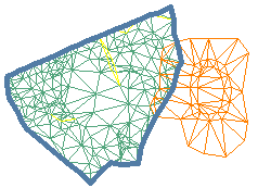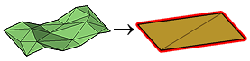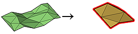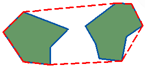 Liegt bei zwei Flächen keine Überlappung vor, werden sie zu einer Oberfläche mit zwei äußeren Grenzlinien vereinigt. Die konvexe Hülle verdeutlicht, dass es sich nur um eine einzige Fläche handelt. |