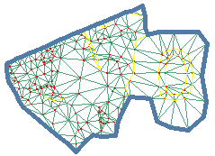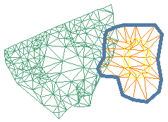 Die Bezugsfläche wird mit einer zweiten Fläche verschnitten. Die zweite Fläche kann z. B. aus der Fortführung eines Punktaufmasses stammen und kann vollständig außerhalb der ersten Fläche liegen oder mit dieser eine Schnittmenge bilden. |